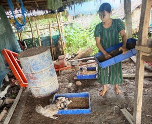 With support of the Kyal Sin May Development Organization and guidance from Spectrum, she started cultivating Black Soldier Flies (BSF) — converting kitchen and agricultural waste into high-protein feed for her chickens and ducks.